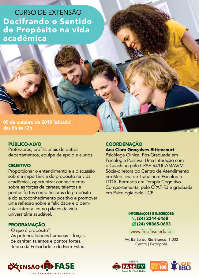 Curso de extensão na FMP/FASE - Decifrando o sentido de propósito na vida acadêmica